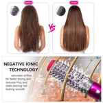 جهاز فرد الشعر بالهواء الساخن يستخدم تقنية الأيونات السالبة المتقدمة وطلاء السيراميك لمنع التجعد والكهرباء الساكنة ، تقلل فرشاة مجفف الشعر من التشابك والكسر، بالإضافة إلى المساعدة في توفير تدليك مريح لفروة الرأس.